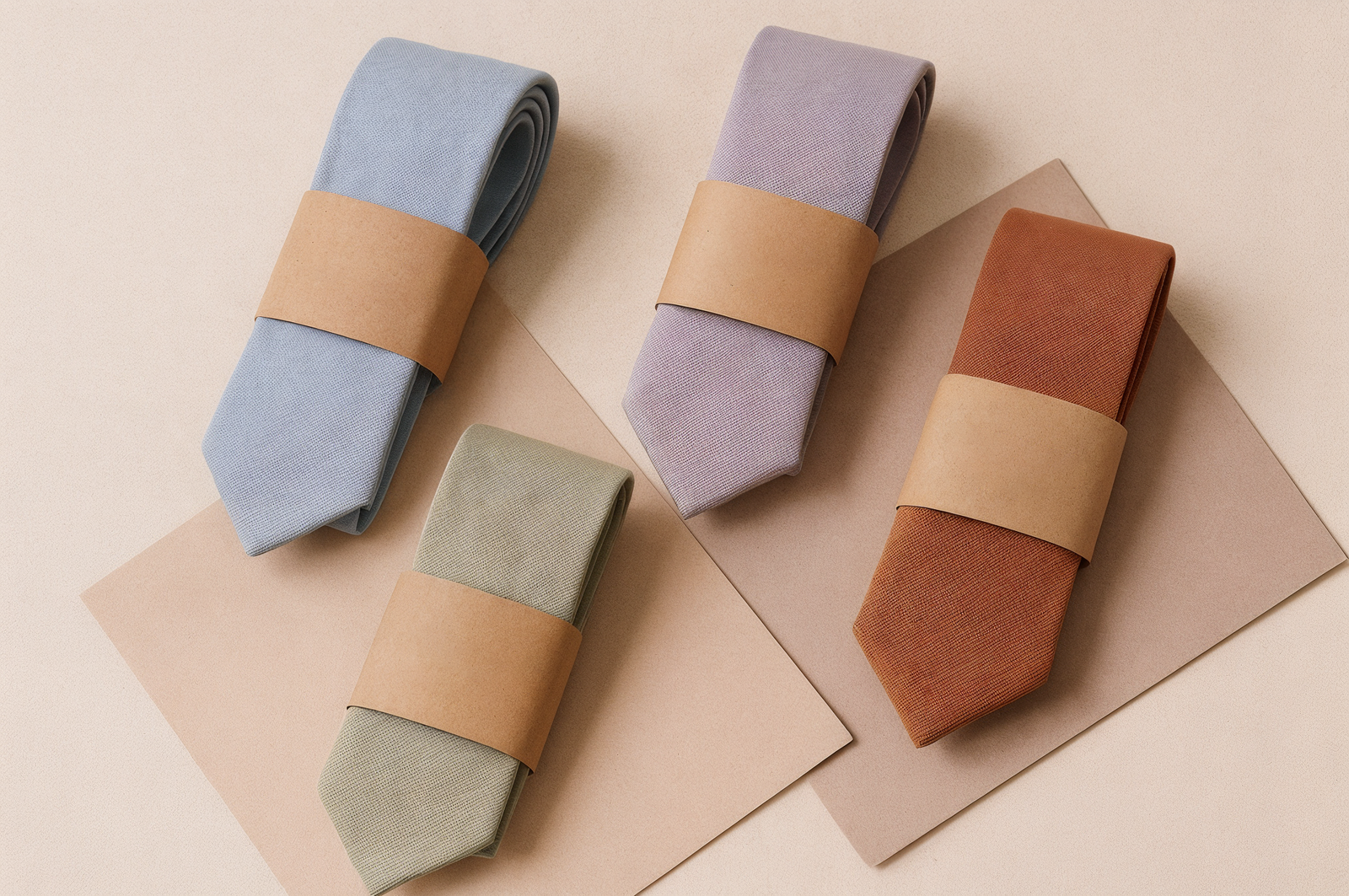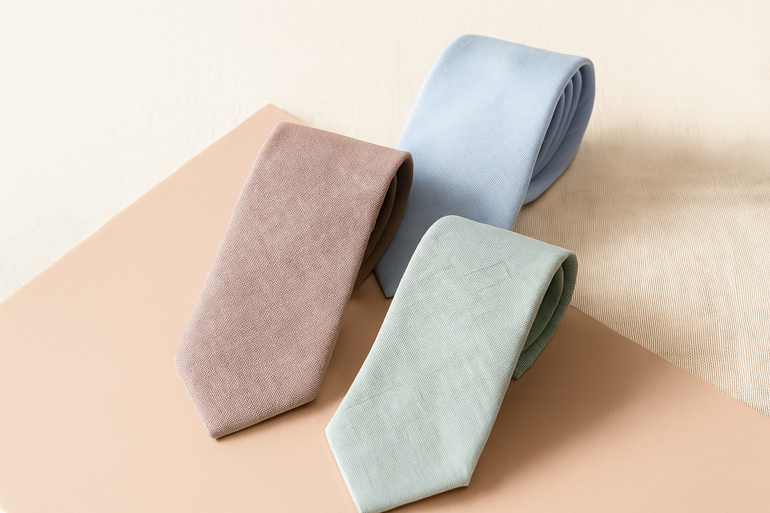 Gravatas em tons suaves e elegantes, com textura encorpada e toque aveludado, inspiradas na beleza dos primeiros raios de luz.
